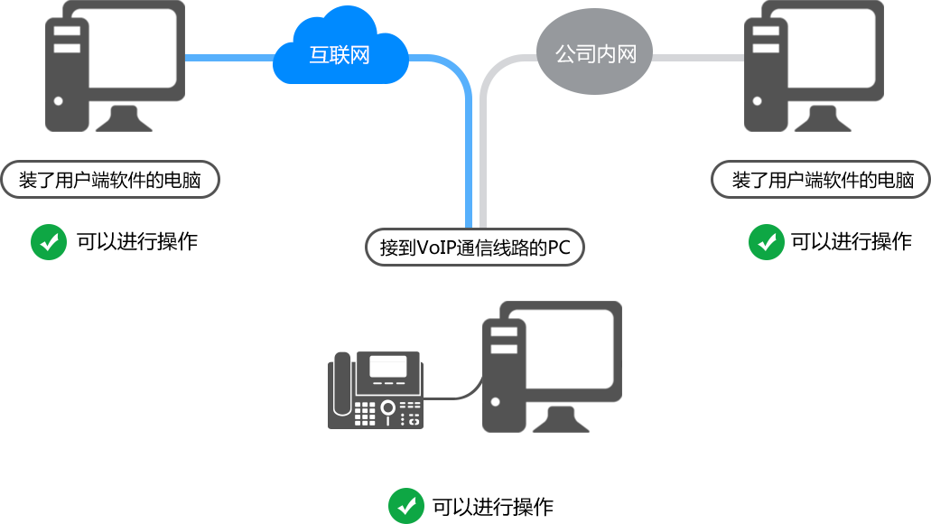 在PC安裝好軟件,連上VoIP通信網(wǎng)絡(luò),注冊好要錄音的號碼,即可馬上在本機上開始對VoIP電話錄音,