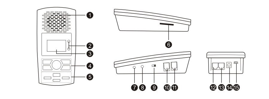 | 13 | LINE 電話線接口(電信或者交換機(jī)過來的電話線) | 14 | DC電源 5V/1A |